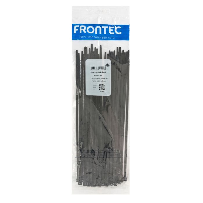 | Conteúdo da Embalagem | Abraçadeira Convencional Nylon 40 Peças 283x4,8mm Preto Frontec |