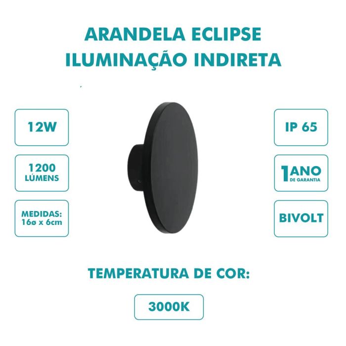 Selecionar regiãoArandela Externa LED 12W 3000K Eclipse II Preto Luz Amarela Gaya