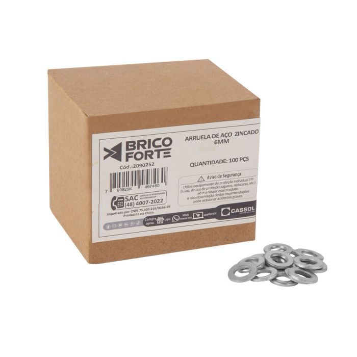 Arruela de Aço Zincado 6mm 100pcs Brico Forte