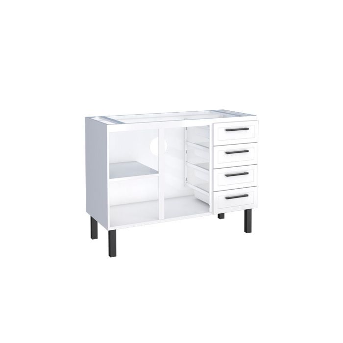 Construído em aço na cor branca, o Balcão Juno não só é esteticamente atraente, mas também é resistente contra ferrugem, proporcionando durabilidade a longo prazo. As suas dimensões cuidadosamente pensadas oferecem amplo espaço de armazenamento, permitindo que você organize utensílios, panelas e outros itens de maneira eficiente.