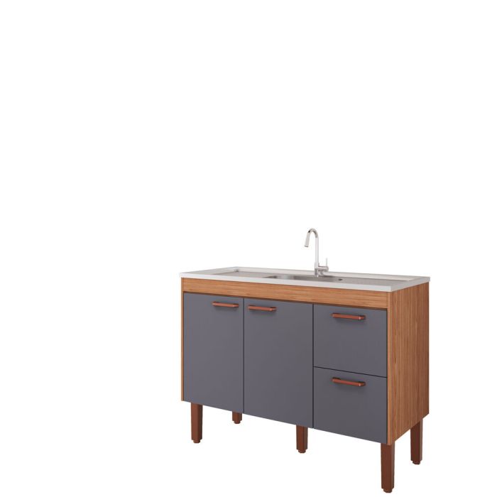 Balcão de Cozinha Slim 4 Portas 1,14m Freijo Titânio MGM Gabinetes
