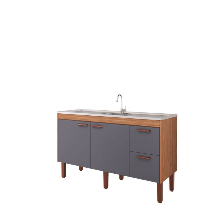 Balcão para Cozinha 1,44m Slim Freijo/titanio 4 Portas MGM Gabinetes