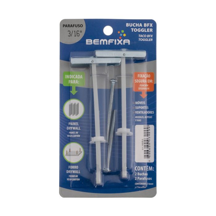 | Conteúdo da Embalagem | Bucha para Drywall com Parafuso Bemfixa 3/16" Toogler 2 Peças |