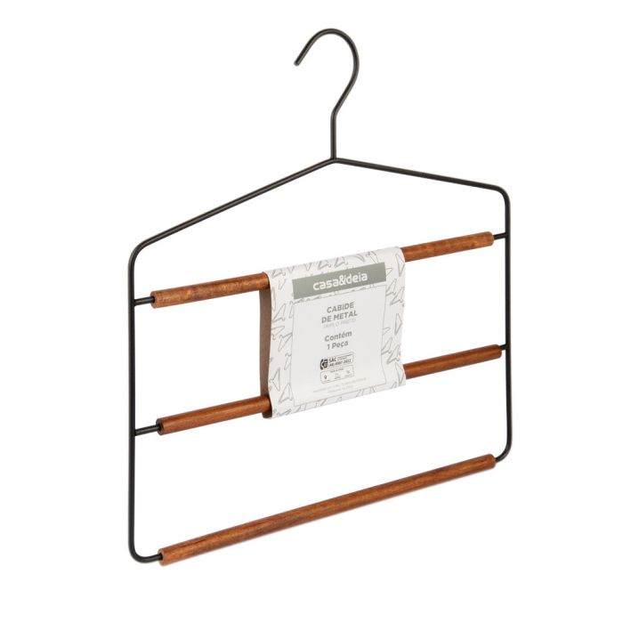 Cabide de Metal 1 Peça Triplo Preto Casa&Ideia tem alta qualidade de seu material, para pendurar suas roupas e organizá-las dentro de seu armário.