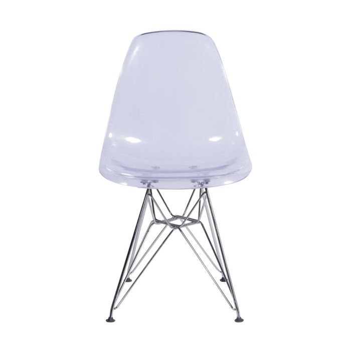 A cadeira DKR combina um design moderno com elegância atemporal. Sua combinação de policarbonato transparente e base de metal incolor cria um visual limpo e sofisticado, perfeito para diversos estilos de decoração. Material de Qualidade: O uso de policarbonato de alta qualidade assegura durabilidade e resistência. O material é conhecido por ser resistente a impactos, o que contribui para a longevidade da cadeira, mesmo em ambientes de uso intenso. Transparência Versátil: O policarbonato transparente permite que a cadeira se misture facilmente em qualquer ambiente. Ela não obstrui visualmente o espaço, o que é ideal para salas pequenas ou ambientes que você deseja manter visualmente leves.
