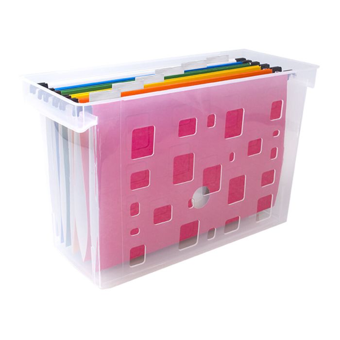 | Informações Adicionais | Caixa para arquivo em polipropileno vazado com 6 pastas suspensas coloridas. Acompanha grampo plástico, visor e etiqueta. |