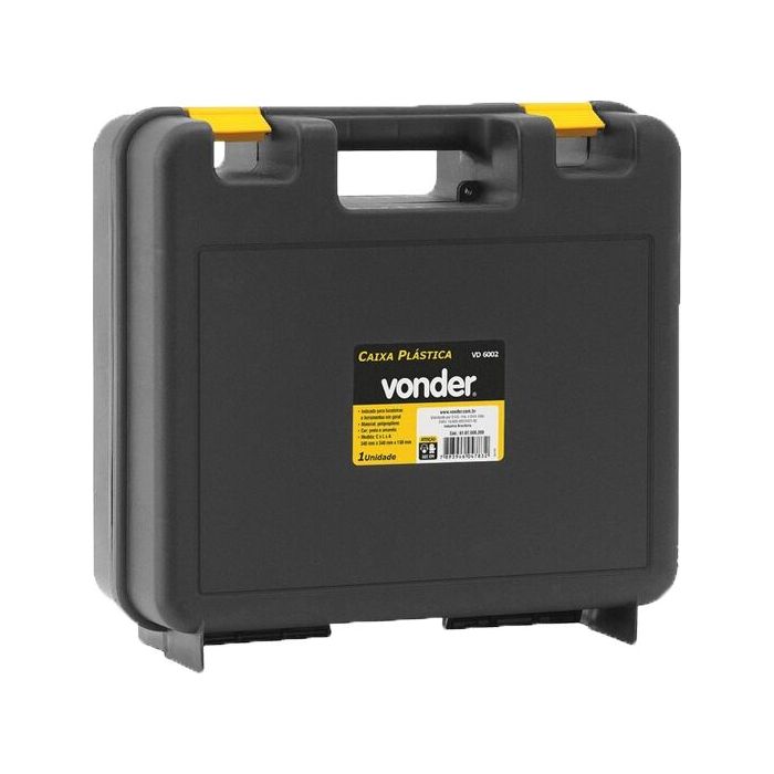 Projetada especialmente para a furadeira VD-6002 da Vonder, essa caixa também pode ser utilizada para armazenar outros tipos de ferramentas e acessórios de tamanhos similares, sendo uma escolha versátil para diversos usos.