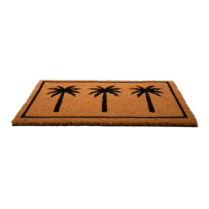 O capacho de fibra de coco é durável e resistente, proporcionando uma recepção charmosa e funcional. O motivo de coqueiro torna sua entrada mais descontraída e alegre desde o primeiro passo.