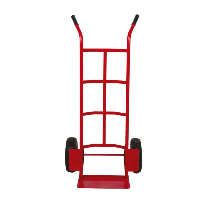 Este carrinho é um símbolo de resistência e versatilidade. Fabricado em aço de alta qualidade, ele oferece uma estrutura sólida e confiável para lidar com cargas pesadas e uso frequente. As duas rodas de pneus de ar não apenas garantem estabilidade, mas também tornam a movimentação suave mesmo em superfícies irregulares. Com capacidade de absorção de impactos, os pneus de ar proporcionam uma condução confortável e eficaz.