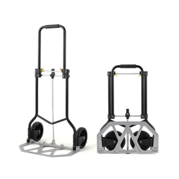 Equipado com duas rodas de borracha duráveis e uma alça ergonomicamente projetada, o Carrinho Dobrável torna o transporte de cargas pesadas uma tarefa suave e confortável. Sua base ampla, com dimensões de 47,5 cm de largura por 25 cm de comprimento, oferece uma plataforma sólida para acomodar uma variedade de objetos, desde suprimentos de escritório até materiais de construção.