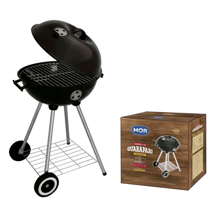 Com 46cm de diâmetro, a estrutura da Churrasqueira Guarapari é feita de aço esmaltado, o que garante resistência e durabilidade. A grelha e a grade em arame cromado proporcionam alta qualidade, enquanto os pés em alumínio, rodinhas e ponteiras em polipropileno garantem segurança e estabilidade durante o uso.