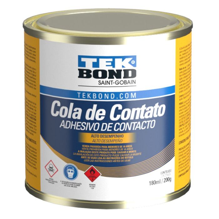 | Informações Adicionais | A Cola de Contato Tekbond é um adesivo de contato à base de borracha de policloropreno desenvolvido para a colagem de vários tipos de materiais entre si (ex.: madeira-madeira; couro-couro) ou combinados (ex.: madeira-couro). Fácil de usar, oferece secagem rápida, boa resistência à água e excelente resistência inicial. Indicada para a colagem de laminados decorativos, pisos de borracha, couro, metais, lambris e diversos materiais sintéticos em madeiras compensadas, aglomerados, MDF e diversos substratos |