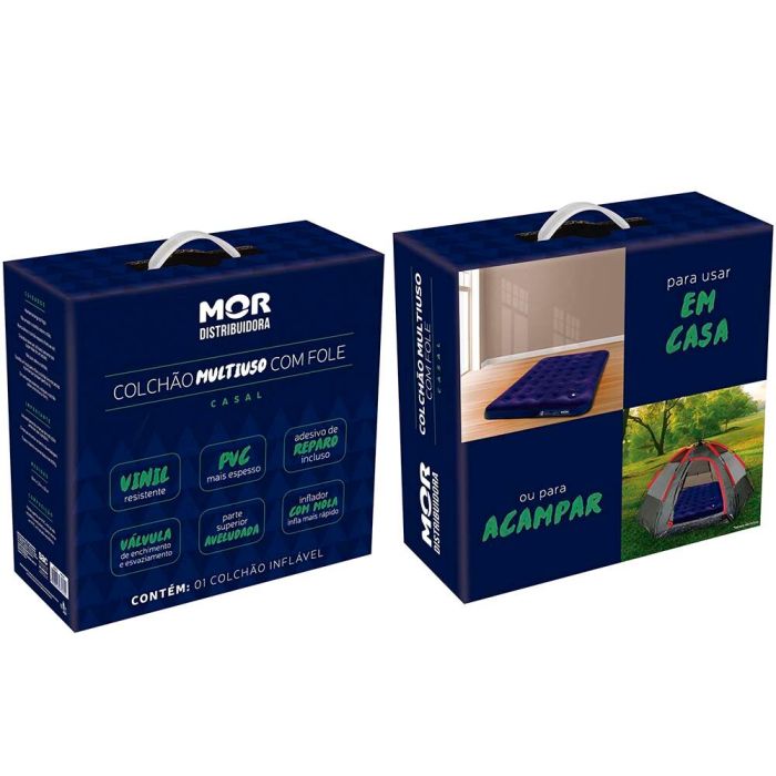 Seja para suas aventuras ao ar livre, receber visitas em casa ou proporcionar um descanso de qualidade para sua família, o Colchão Multiuso Casal Mor é a escolha perfeita. Desfrute de noites aconchegantes e confortáveis onde quer que você esteja com este colchão inflável versátil e durável.