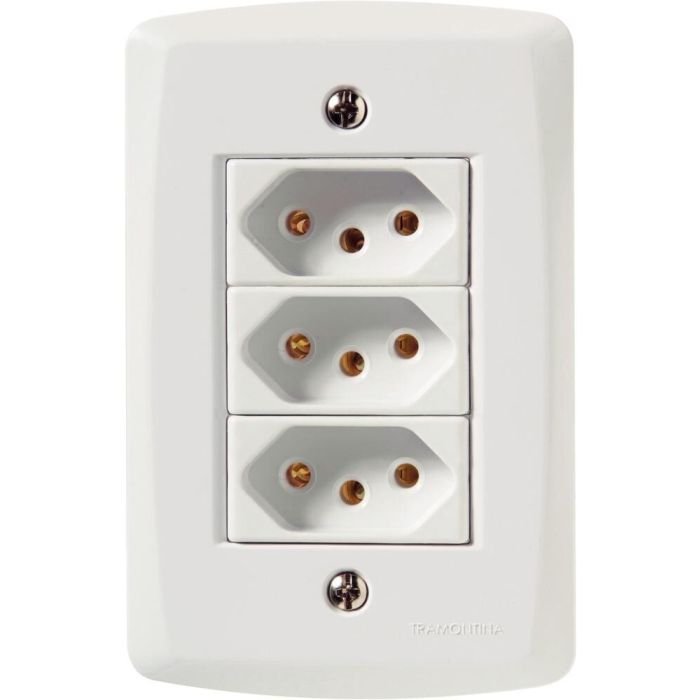 Conjunto Tomada Lux2 3 Módulos 2P+T 10A Branco Tramontina