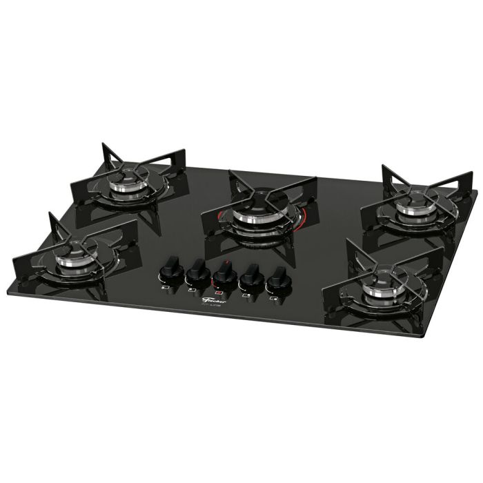 Cooktop a Gás Fischer 5 Bocas Fit Line Vidro Preto