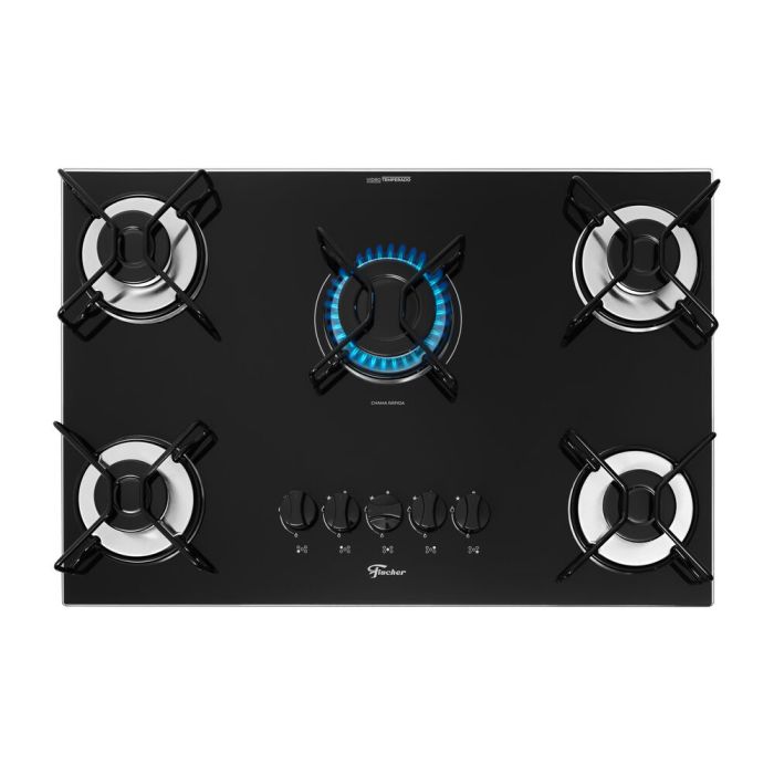 O Cooktop Fischer conta com queimadores de tecnologia italiana SABAF, que são altamente eficientes e duráveis. São 5 queimadores: 1 rápido (3.000W) e 4 semirrápidos (1.750W), proporcionando flexibilidade e potência para diferentes necessidades de cozimento. A câmara de gás fechada garante que a chama não se apague com facilidade, aumentando a segurança e a confiabilidade durante o uso.