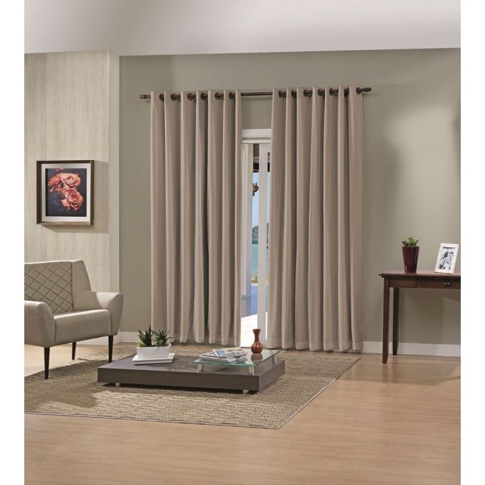 Cortina Bella Janela 2,6x1,7m Pratika Lisa Taupé com Ilhós