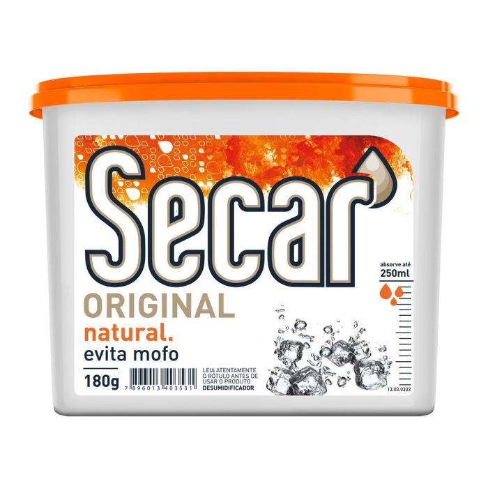 | Informações Adicionais | O Secar Natural é um Evita Mofo com suave e agradável perfume, que age eliminando a umidade, evitando os problemas de mofo, fungos e odor em armários, guarda-roupas, gavetas, gabinetes de pias, bibliotecas, videotecas, discotecas, pianos, aparelhos de som, equipamentos fotográficos, etc. Secar age absorvendo a umidade do ambiente, armazenando a água no pote. |