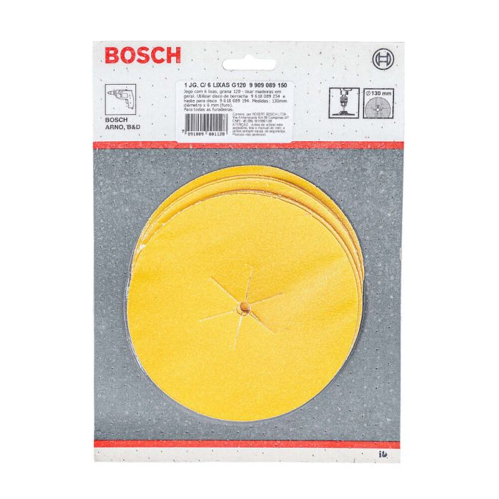 | Conteúdo da Embalagem | Disco de Lixa para Madeira Grão 120 6 Peças 130mm Bosch |