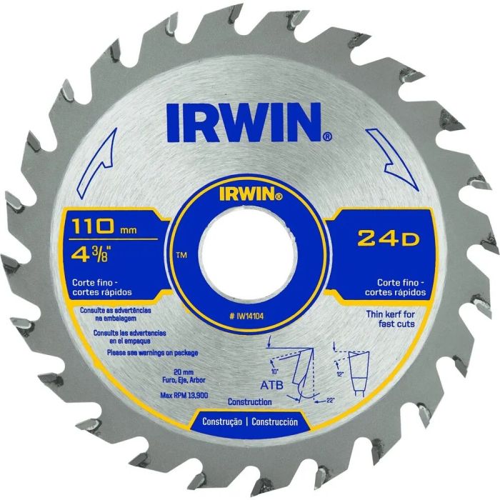| Conteúdo da Embalagem | Disco de Serra Irwin 110mm 24 Dentes |