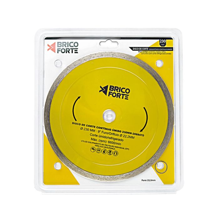 | Conteúdo da Embalagem | Disco Corte Dimantado Continuo Úmido 230mm Brico Forte |