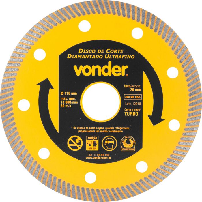 | Conteúdo da Embalagem | Disco Diamantado Turbo Porcelanato 110mm Vonder |