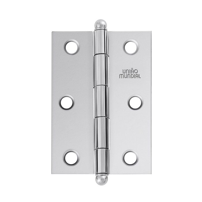 A Dobradiça 2.1/2'' Cromada da União Mundial é fabricada com materiais de alta qualidade, garantindo durabilidade e resistência. O acabamento cromado protege contra corrosão e desgaste, ideal para uso prolongado em portas e móveis.