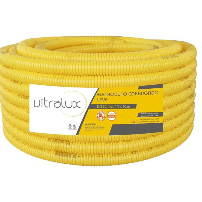 | Conteúdo da Embalagem | Eletroduto Corrugado 32mm PVC Flex Amarelo 10m Vitralux |
