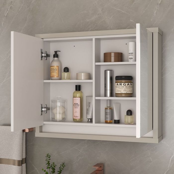 - Espaço Interno Funcional: Com prateleiras ajustáveis, a espelheira proporciona espaço organizado para armazenar produtos de beleza, higiene pessoal e acessórios.