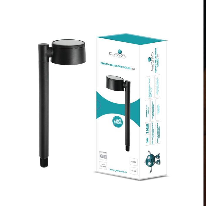 Espeto Balizador Solar Soleil 2W 3000K Preto Gaya