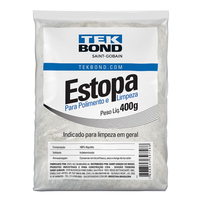 | Conteúdo da Embalagem | 1unidade de Estopa para Polimento e Limpeza 400g Tekbond |