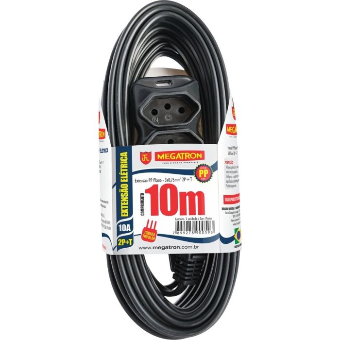 Extensão Megatron 3x0,75mm 10m PP