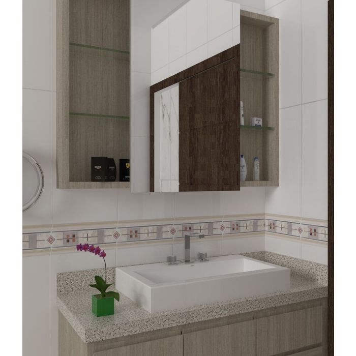 A Faixa Decorativa 8,5x33 Gld2189 da Gabriella é uma escolha clássica e sofisticada para adicionar um toque de elegância aos seus espaços. Com uma combinação de cores neutras, bege e marrom, esta faixa decorativa é ideal para uso em banheiros e cozinhas, oferecendo diferenciação e bom gosto à sua decoração.