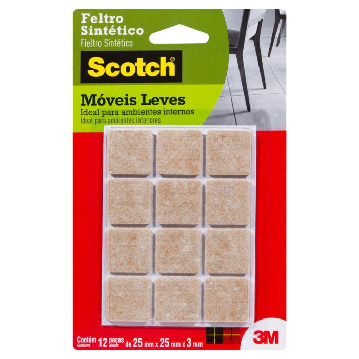 | Conteúdo da Embalagem | Feltro Adesivo 3M Quadrado 25mm 12 Peças |
