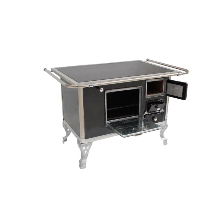O destaque desse fogão a lenha está no seu lado esquerdo, onde possui uma superfície vitrocerâmica, que além de facilitar a limpeza, também proporciona um visual sofisticado. Com essa funcionalidade, você pode preparar suas refeições de maneira prática e rápida, sem abrir mão do sabor e da tradição do fogão a lenha.
