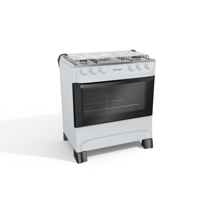 Com acabamento em branco, o Fogão MFI5BB Mueller combina com qualquer estilo de cozinha, oferecendo não apenas performance, mas também um visual limpo e moderno.