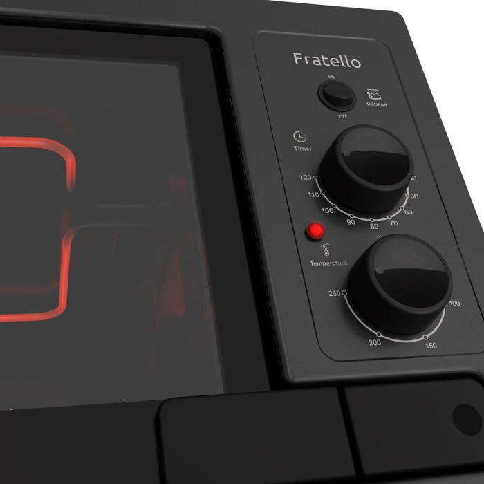 O Forno Elétrico 44L Fratello Grafite Mueller apresenta um design elegante e compacto que se encaixa perfeitamente em qualquer ambiente de cozinha. Sua estrutura é fácil de limpar, graças ao revestimento interno autolimpante, que facilita a remoção de resíduos de alimentos.