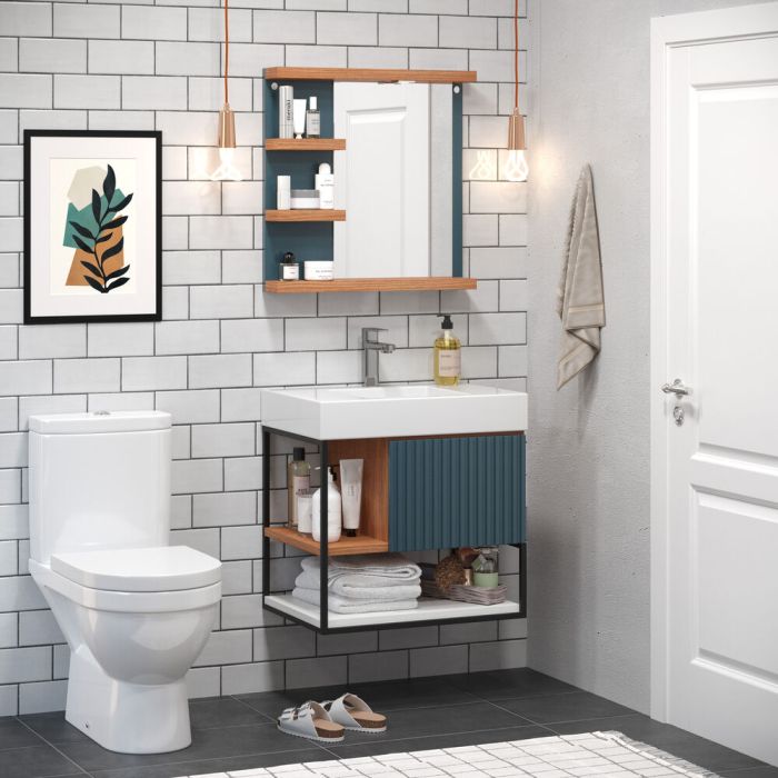 Com um design funcional, o gabinete conta com compartimentos bem distribuídos, ideais para armazenar produtos de higiene, toalhas e acessórios, mantendo o banheiro sempre organizado e prático.