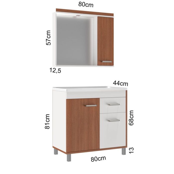 Selecionar regiãoGabinete para Banheiro MDF/MDP com Tampo New Glass Cinamomo 80cm C-Linea