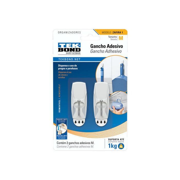 | Conteúdo da Embalagem | Gancho Adesivo Zafira Único 2 Peças Branco Tekbond |