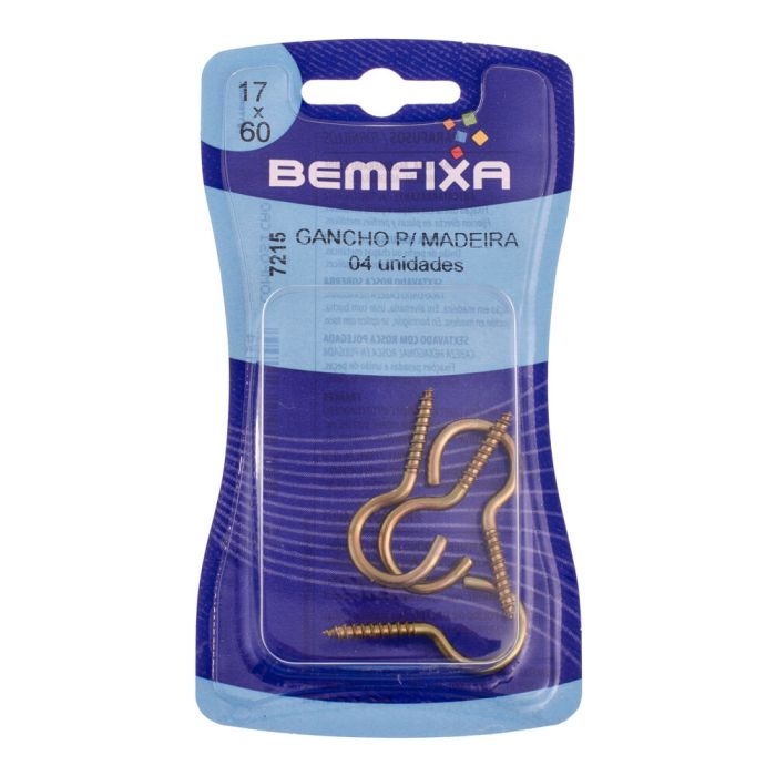 Gancho de Metal para Madeira 7215 4 Peças 17x60mm Bemfixa