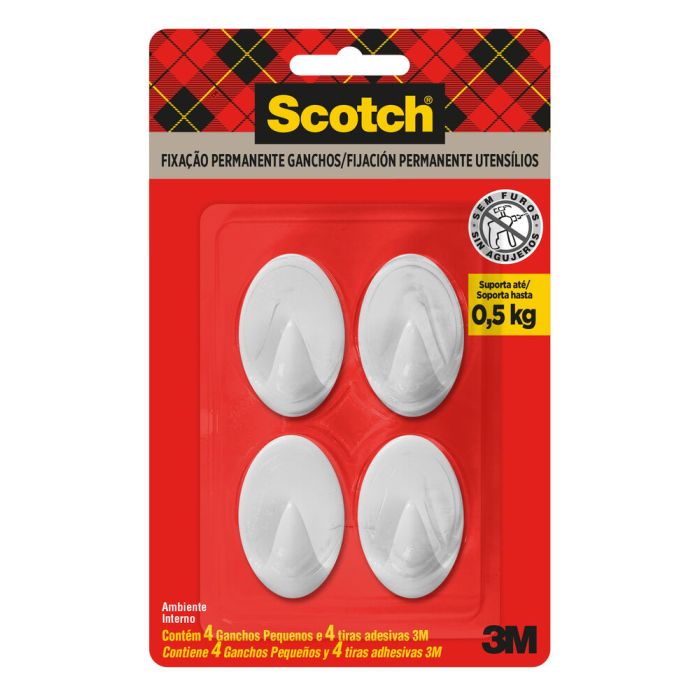 | Material | Gancho: poliestireno transparente. Tira adesiva: adesivo base borracha sintética e liner protetor |