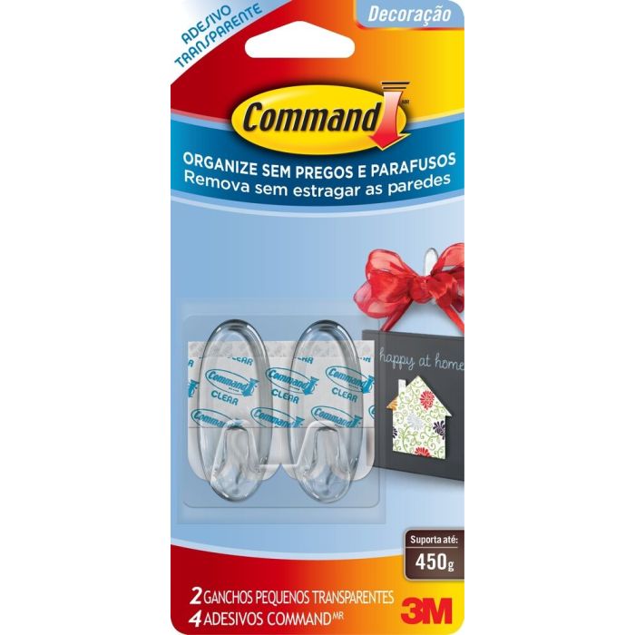 | Informações Adicionais | O gancho adesivo 3M Command transparente é a solução ideal para organizar e decorar sua casa, dando destaque apenas ao que estiver pendurado. Faça você mesmo em minutos de forma prática, sem sujeira, sem furos e remova quando quiser, sem estragar sua parede. |