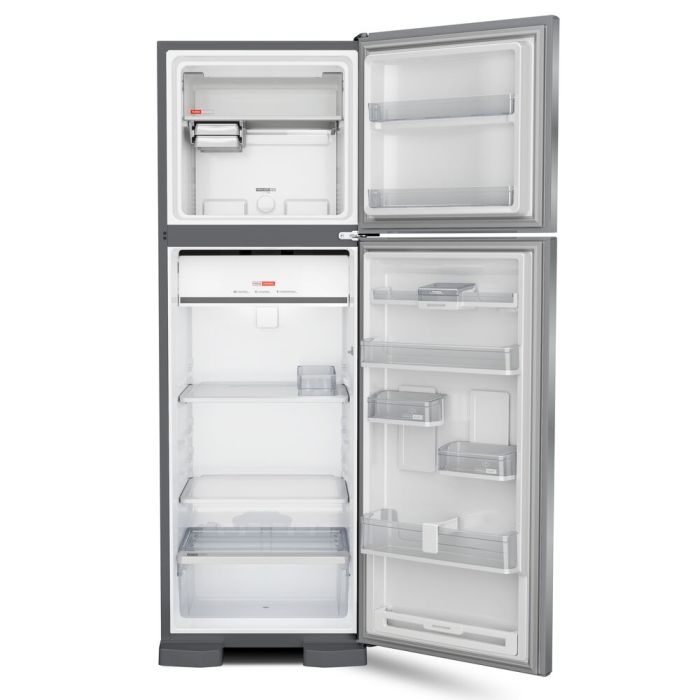 Com uma capacidade total de 400 litros, é composto por duas portas, sendo a superior dedicada ao refrigerador e a inferior ao congelador. O refrigerador possui prateleiras de vidro temperado removíveis e ajustáveis, permitindo a organização de alimentos de diferentes tamanhos e formatos. Além disso, possui um sistema de iluminação LED interno, garantindo uma melhor visibilidade e facilidade no acesso aos alimentos.