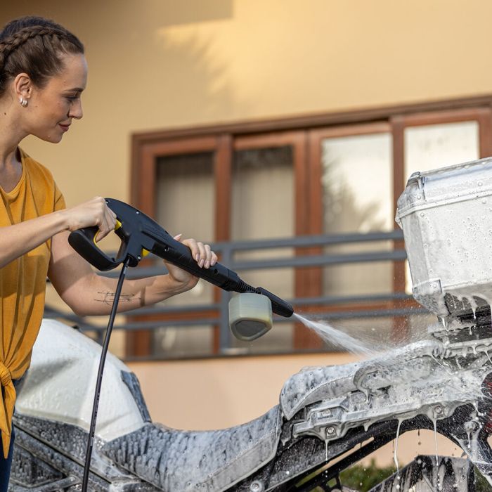 - Canhão de espuma exclusivo Kärcher: Produz uma espuma densa a um nível quase profissional para uma limpeza mais profunda, acessório já vem de série na máquina.
