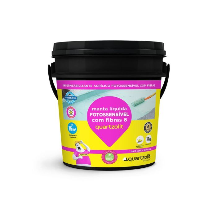 A Manta Líquida Fotossensível com Fibras 6 Quartzolit é a solução ideal para impermeabilização com praticidade, eficiência e durabilidade. Formulada com fibras sintéticas, dispensa o uso de tela de reforço (exceto em pontos críticos como ralos e cantos), proporcionando uma aplicação mais rápida e segura.