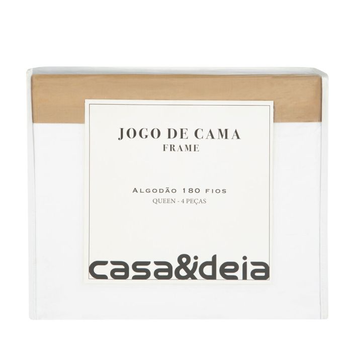 Jogo de Cama Queen 180 Fios Branco/Bege Casa&Ideia