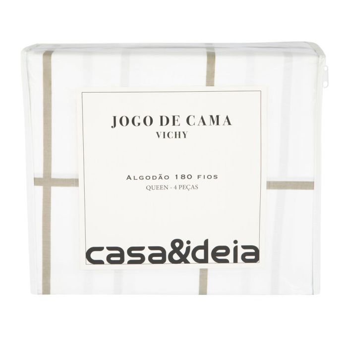 Jogo de Cama Queen 180 Fios Listras Branco Casa&Ideia