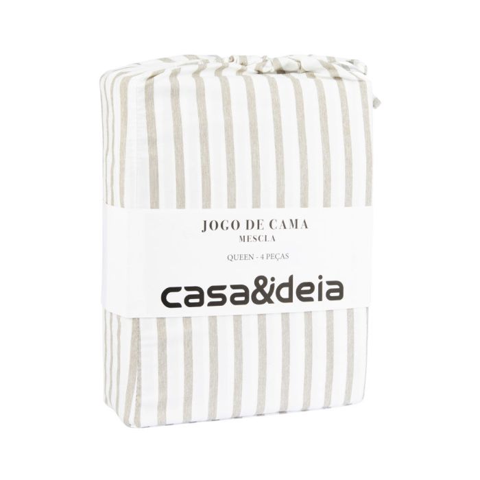 Jogo de Cama Queen Mescla Cinza/Branco Listra Casa&Ideia