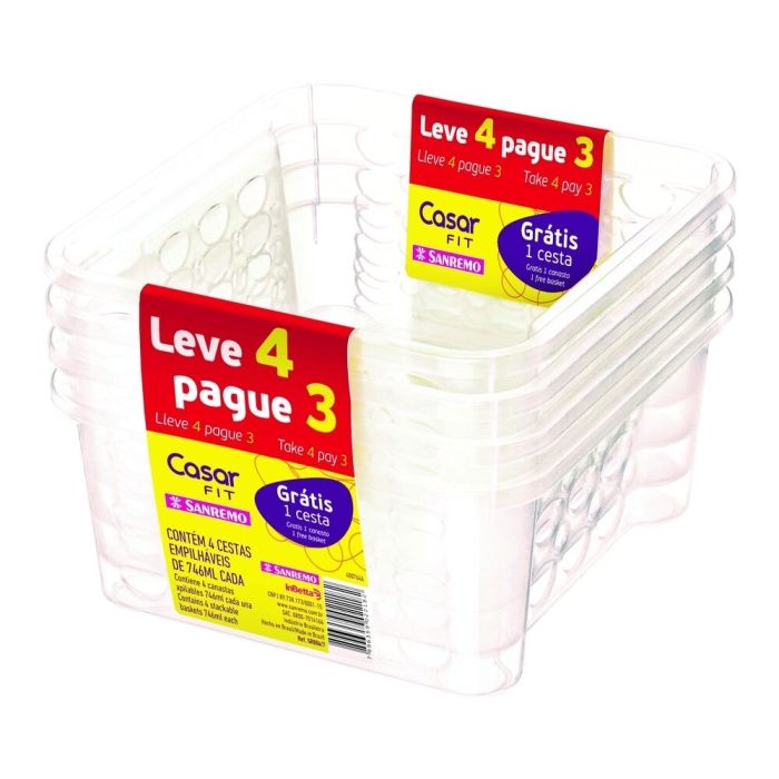 | Conteúdo da Embalagem | Jogo de Cestas Plásticas Sanremo 746ml Transparente |